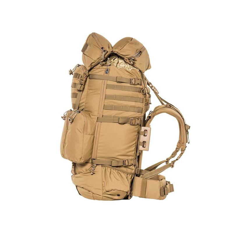 The 100-liter Blackjack grand mission bag has a compartment for a sleeping bag at the bottom, 4 external pockets, and a removable top flap that can be used as a haversack. The harness is designed to be worn on ballistic plates and the BVS buffer system helps stabilize the load and provide excellent back ventilation. Lighter than the NICE frame, it is equipped with the Military Light Frame (MLF) carrying frame that moves with you for heavy load carrying.