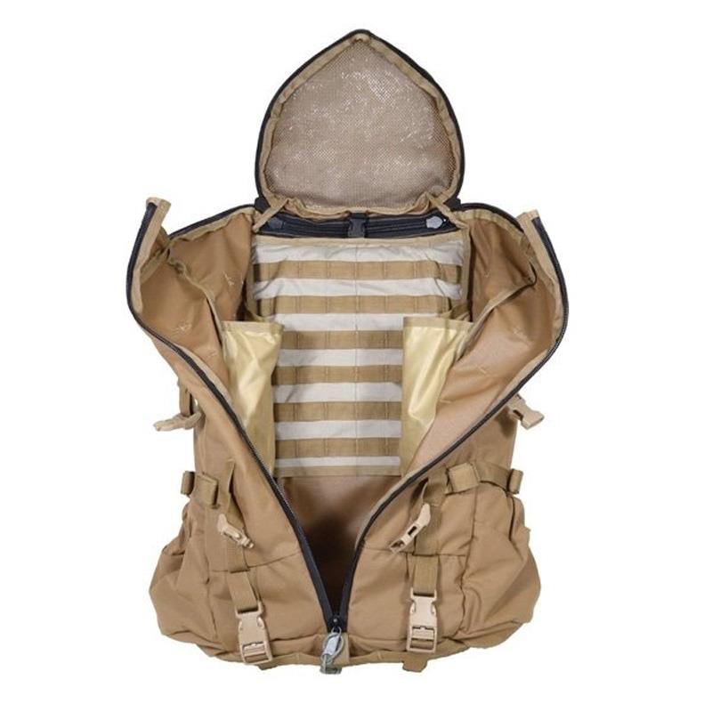 Features: • Evolving backpack according to missions • 3-ZIP design for quick access to the inside of the bag • OVERLOAD function to attach a rifle or mortar between the frame and the bag • NICE carrying frame for comfort and stability under the heaviest loads • Ventilation and stability system (BVS) on the frame • FUTURA harness for quick adjustment and fitting according to back length • 2 internal sleeves can each accommodate water reservoirs (3L) • Side pockets for water bottles • Molle loops on the outside, on the inner panel and on the belt • At the top, pass-throughs for antennas, cables and hydration hoses • 2 zip pockets for accessories on the top • Belt width: 2" (5 cm) • Velcro® patch location for identification • Volume: 49 liters • Weight: 3.5 kg • Dimensions: 71 x 34 x 32 cm • Cordura® 500D Teflon® coating against weather and UV • YKK® waterproof zips, IR compliant • Made in USA