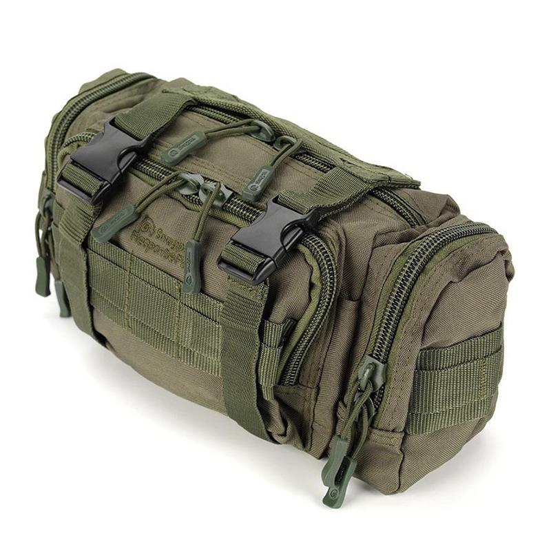 Features: • Tough and water resistant • Multiple compartments • Carry handle • Maximum belt adjustment: 46" (116 cm) • Molle loops • Zip pullers easily accessible with gloves • Approximate dimensions: 36 x 16 x 14 cm • Main compartment: 22 x 10 x 14 cm • Front pocket: 16 x 6 x 12 cm • Side pockets: 7 x 5 x 14 cm • Colors: Black (BK), olive green (OG), Coyote Tan (CT) • 100% 600D nylon construction • Weight: 400 g