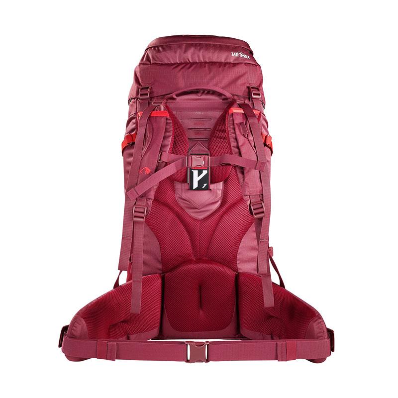 Stronger curved shoulder straps and a shorter back offer women more comfort. As with all Tatonka trekking and hiking backpacks, the carrying system can be adjusted to the length of your back, so that the load is optimally transferred to the hip area.