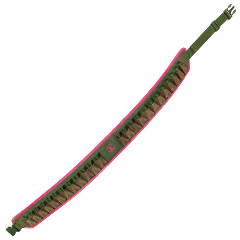 Cartridge belt for shotgun in Cordura, leather and magenta details with adjustable belt, 24 tubes caliber 12 and 20.