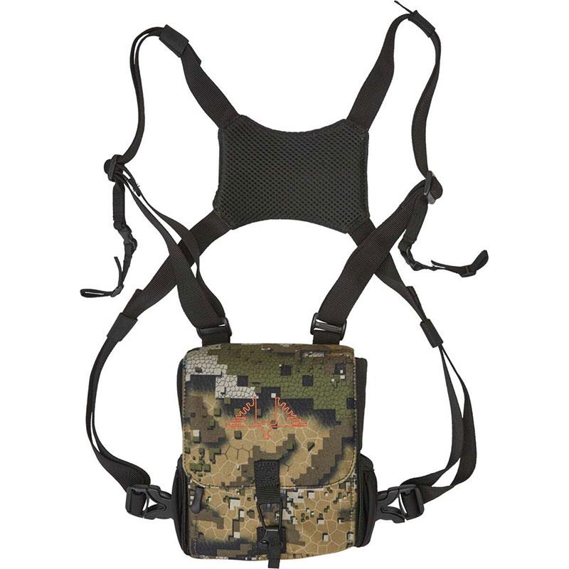 Functional binocular bag. Robust harness with several adjustable straps for a better fit. Made with MOLLTEC™ fabric. The lid has a loop for one-handed opening and locking. The polishing cloth is included. Adjustable size lid for binoculars from 8x40 to 10x56. Measurements: 18*15*7 cm.