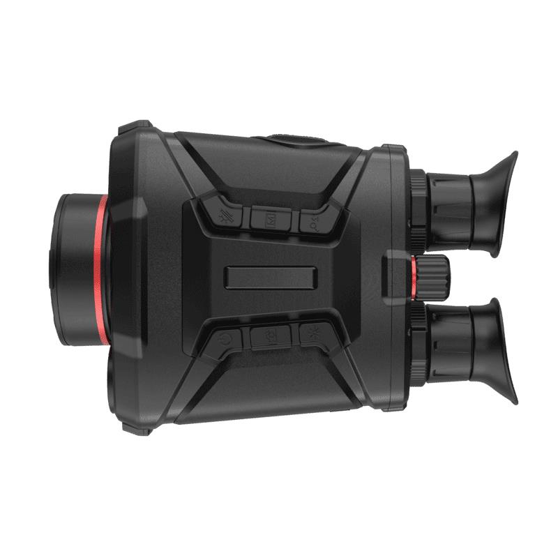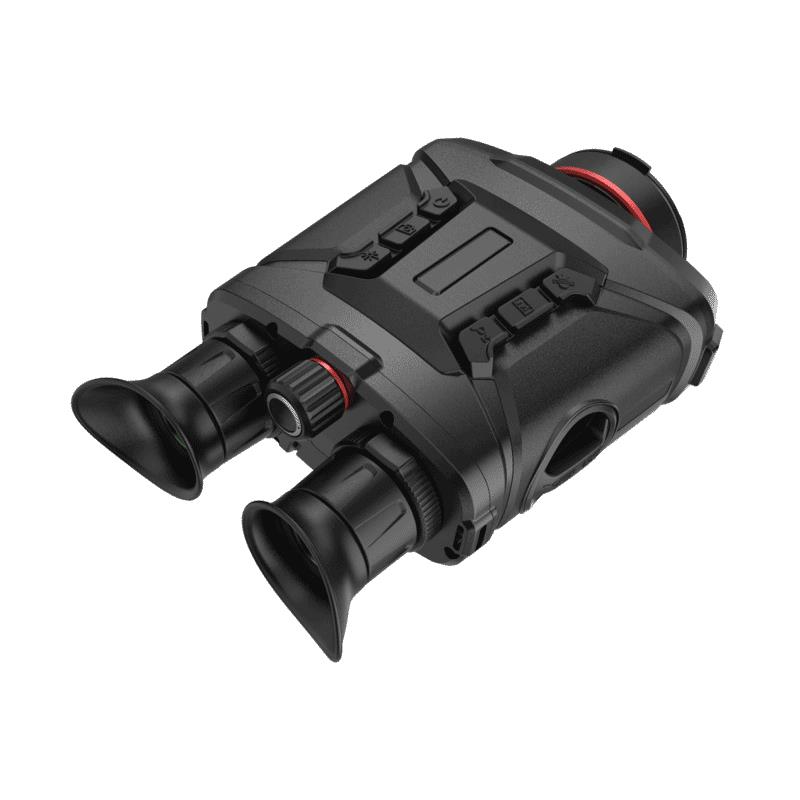 The Voyage Series' thermal & optical fusion binoculars with dual spectrum are equipped with a high-sensitivity 12μm infrared thermal sensor (NETD < 20 mK), an ultra-low light 2560×1440 optical detector, a 1024×768 OLED display and a wide field of view eyepiece. The device can quickly discover and locate hidden objects, even in extreme environments such as smoke, fog, rain, and snow. It can be widely used in scenarios of law enforcement, search and rescue, drug combat, smuggling combat, hiking, and hunting. The waterproof casing guarantees optimum performance even in extreme weather conditions and tough environments. The Voyage's user-friendly interface and ergonomic buttons make adoption and application intuitive and straightforward. The binocular offers a variety of images, including thermal, visible, and fusion, and easily adapts to different environmental conditions. The Voyage is equipped with all the key functions for target detection and positioning, including a laser rangefinder, a GPS module, an electronic compass, an inclinometer and an 850 nm IR illuminator. This high-tech bi-ocular can be powered by three 18650 rechargeable lithium batteries for a working time of 8 hours. An integrated proximity sensor helps save power.