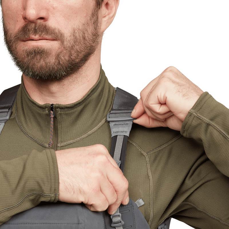 • Easy to install and remove single attachment point, allowing for one-handed use • Structured back panel for a fit similar to that of a vest • Laser-cut holes bonded to the airmesh create optimal breathability throughout the harness. • Designed for 8x and 10x binos with a maximum height of 6.75 inches • Includes an ambidextrous rangefinder pouch with coiled attachment cable • Magnetic lid on bino and rangefinder pouch for silent use and easy access to optics • Hypalon MOLLE strap for accessory attachment on both sides of the case, as well as under the harness • Quick attachment for binoculars, which can be attached on either the left or the right side of the user. • Attachment point for the insulated Jetstream WS sleeve under the lens cap holder • Side and back pockets in stretchy mesh to keep the anemometer and other tools within reach • Zippered back pocket • Adjustable for an optimal fit • Patent-pending clips allow for easy removal of the bino case from the harness • Internal lens cloth