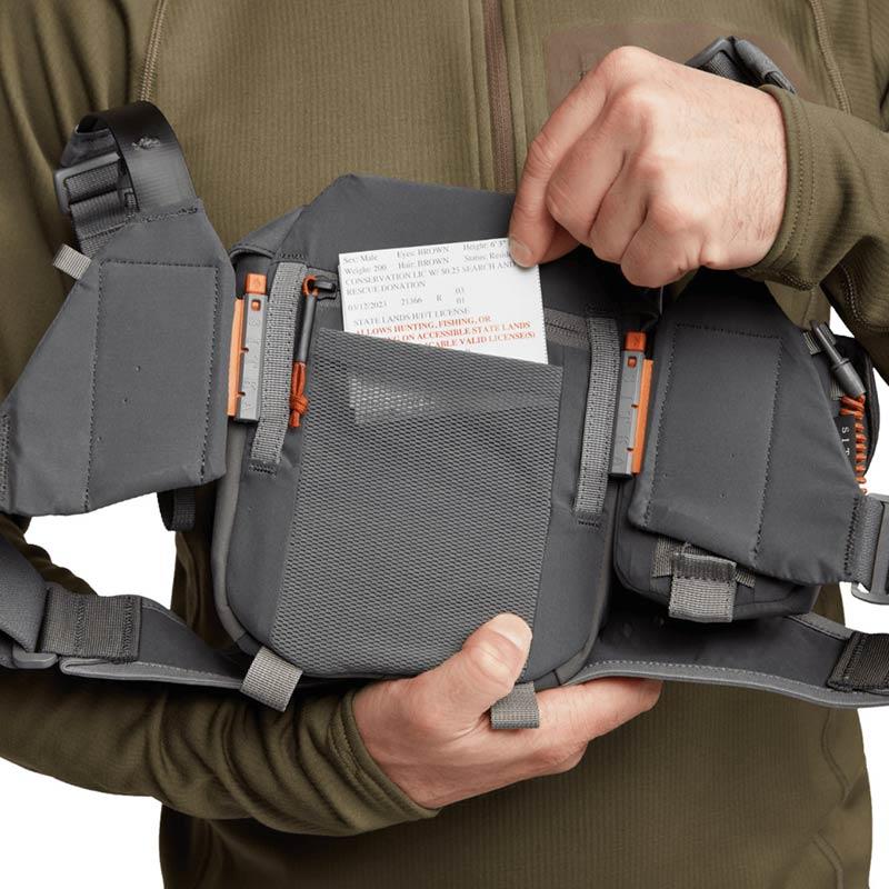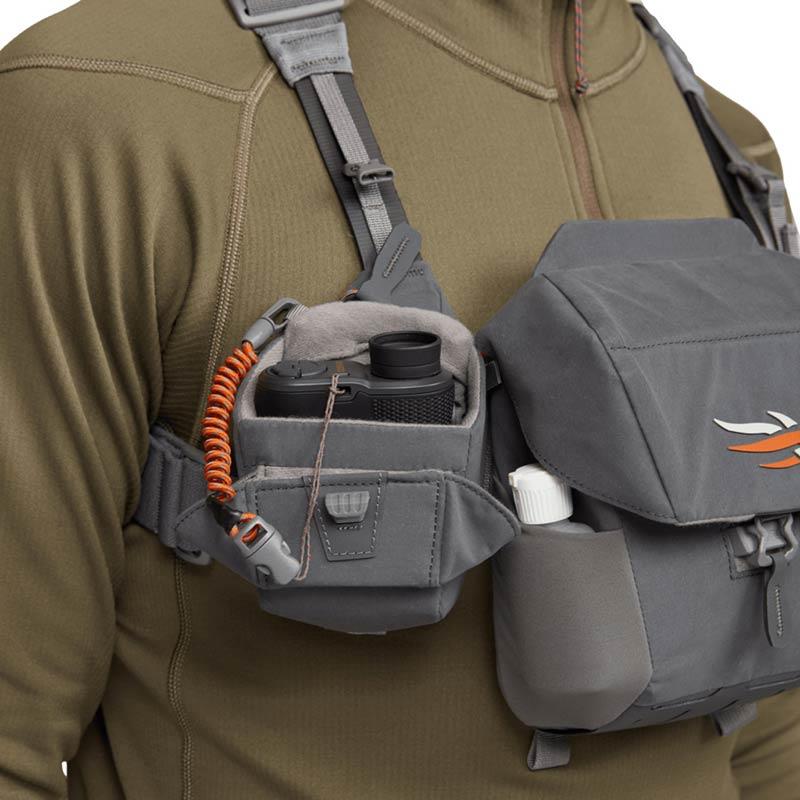 Relying on the proven heritage of our mountain optical harness, we designed the Flash optical harness for comprehensive modularity and integration with your kit. This customizable harness for binoculars and rangefinders fits like a vest and can be put on and taken off in a blink of an eye when you're wearing a hunting harness, a hood, or when hunting from a saddle. With limited straps, silent closures and magnetic lids that tuck away for easy access, it is the stealthiest harness ever designed.