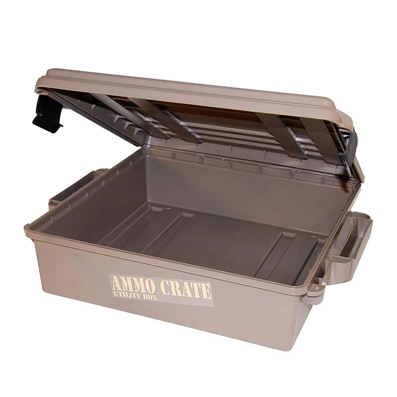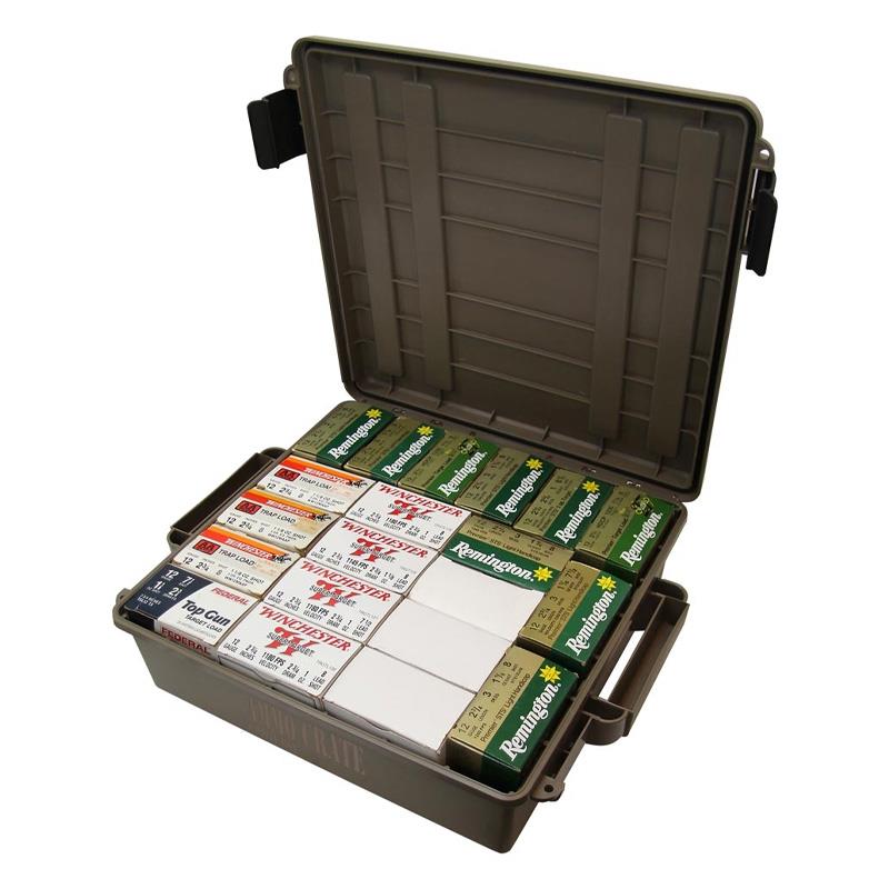 This crate is designed for storing ammo, and is also perfect for storing shooting, hunting or survival equipment. It has 2 extra sturdy handles for easy carrying of up to 38 kg of equipment. Designed to be stacked up high, thanks to moudled stacking ridges, including 4 lash down points for VHL. Water resistant, the o-ring seal with the MTM latch system allows for dry storage. The double padlock tabs and 2 solid latches make these ammo crates the perfect solution for many storage needs. Besides holding many rifle and handgun rounds, this size can contain 2 trays or 20 boxes of 12 gauge.