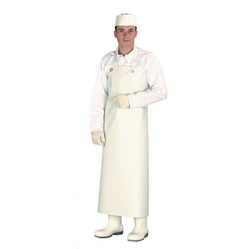 Apron of 115 cm long and 90 cm wide covering well from boots up to the upper torso as well as on the sides. Its durable polyurethane fabric is very easy to clean and offers great protection. Unlined, it can be cleaned in the machine at 60°C and is not afraid of blood or fat stains. Neck mount with polyurethane strap and adjustable plastic clip held by metal eyelets. Waist attachment by elastic cord with metal hook in metal eyelets. Made in France.