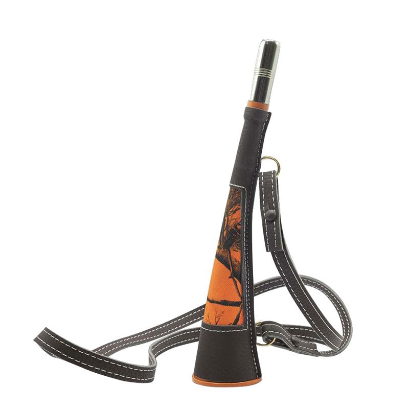 The Januel product is a 25 cm long brass bell horn, covered with an orange camo sleeve.