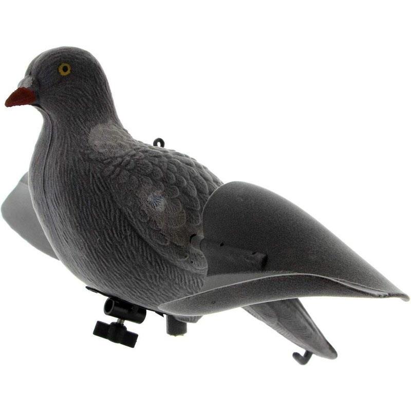 Very realistic! Pigeon with wings turning in the wind, decoy flocked with a peach-skin type finish to avoid reflections! Works with the wind which moves the wings from as little as 8 km/h (no batteries or mechanism), making its use entirely legal!