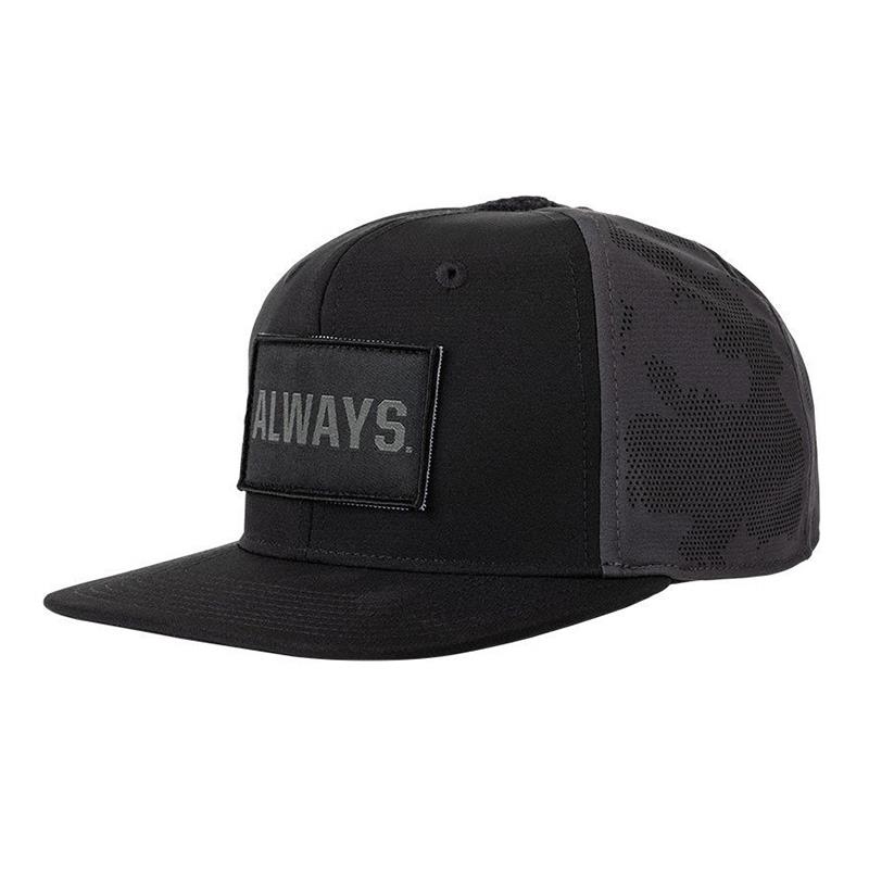 Features: • 5-panel construction with curved brim • The brim is made of 2 different materials • Four-way stretch fabric • Perforated Camo fabric on 4 panels for ventilation • Reflective logos on the front panel and rear adjustment strap • Discreet self-grip rear closure • Anti-odor sweatband in mesh fabric • Reflective trim on the outer brim • Always Be Ready tape on the inner seams • 86% polyester / 14% elastane fabric with 3.7-oz. Enduro-Flex™ properties. Mesh finish