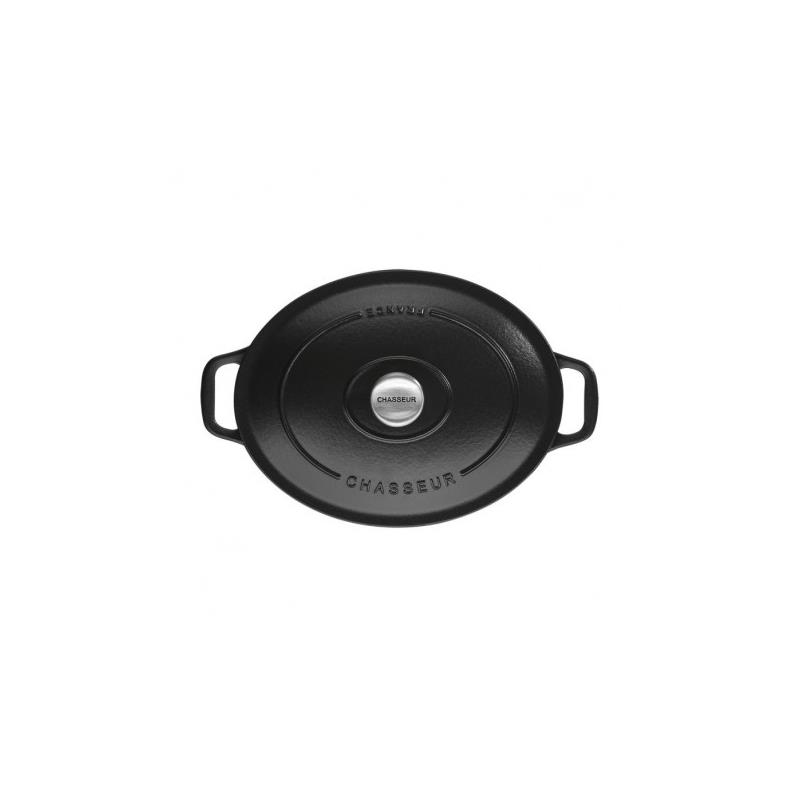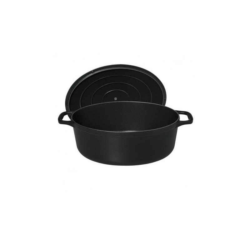 Oval enamelled cast iron casserole, ideal for cooking and serving directly at the table with elegance.