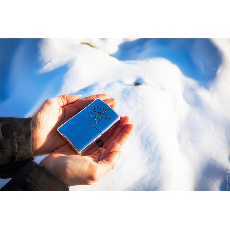 Catalytic warmers provide heat for about 10 hours once « the fill is done » and reach a temperature of 50°C. Catalytic warmers are recharged with lighter fuel and then provide flameless combustion. Supplied with a pouch.