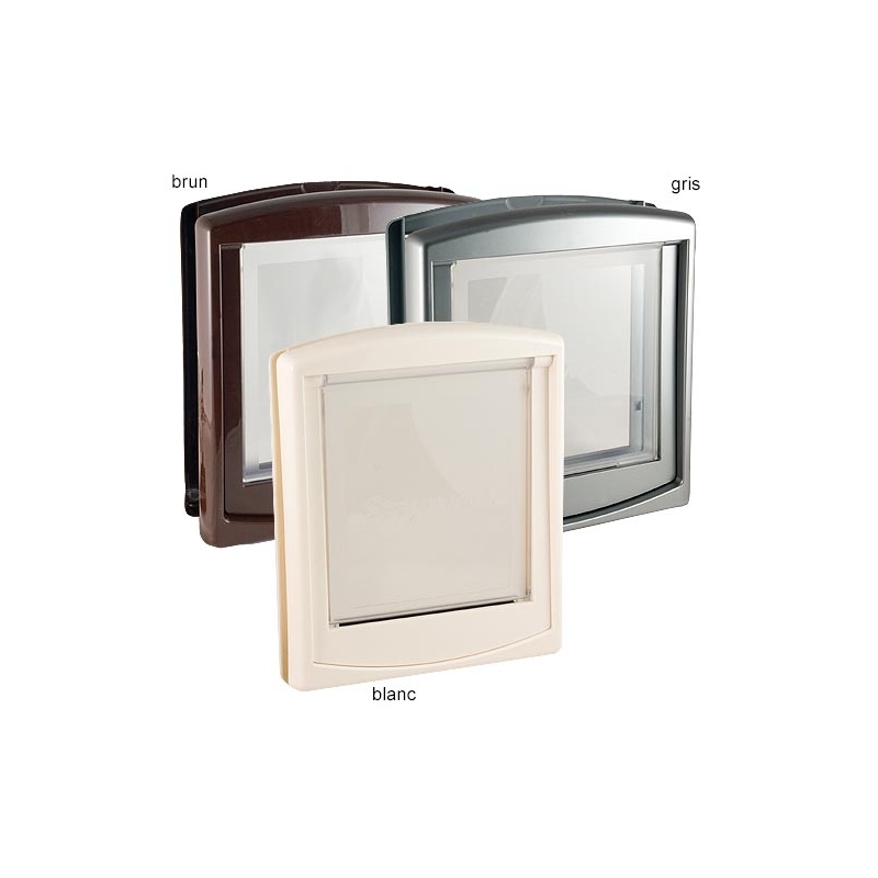 Overall size: 236 mm x 198 mm (91/4” x 73⁄4”) Cut out size: 185 mm x 158 mm (71/4” x 61/4”) Maximum pet shoulder width: 147mm (53⁄4”) Maximum pet weight: 7 kg (15 lbs) Closing panel included Suitable for cats and small dogs up to 7 kg (15 lbs) 3 Year Warranty