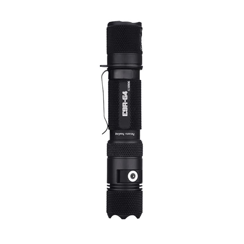- Contains: • Powertac E9R-G4 flashlight • Powertac 18650 3200mAh rechargeable battery • Magnetic USB charging cable • Plastic case • Spare O-rings • Remote switch • Fixing ring • Instruction manual