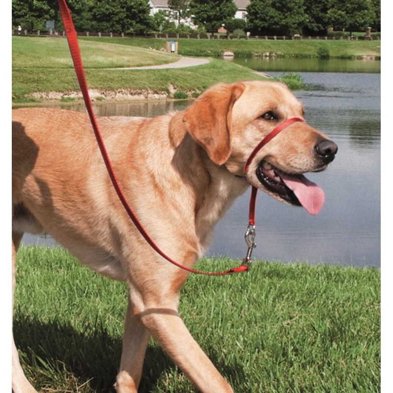 The Easy Walk™ Headcollar is a comfortable and stylish solution to help dog owners with pulling, lunging and jumping. When the dog’s nose is ‘steered’, the body follows, eliminating any chance of the owner being pulled down the street by their dog. Evolved from a simple nose loop, the soft nylon construction of the headcollar sports a coloured ribbon finish, is lined with a comfortable felt pad, and is compatible with most leads which can be attached. Available in 3 sizes and 2 colours. (Lead not included.) Stops pulling, lunging, and jumping Veterinarian recommended Immediate, gentle control Not a muzzle Never chokes Adjustable nose loop for a custom fit Neck strap applies pressure to the back of the dog's neck Soft nylon construction 2-year warranty Training Guide included