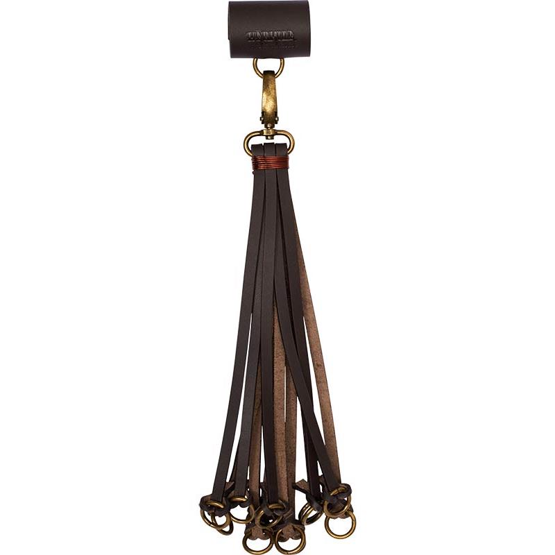 The Retrieve game hanger has twelve leather straps fitted with a brass hook on which to hang the game. It comes with a leather strap allowing you to attach it to your belt, as well as a carabiner to detach it and put it back on