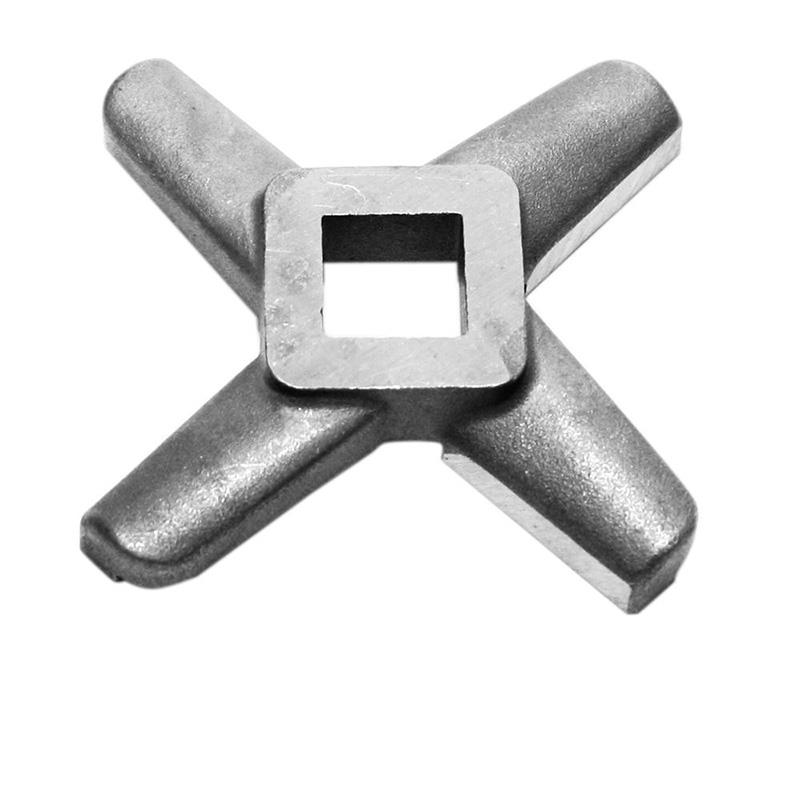 Steel knife 4 blades for meat mincer no. 20 and 22 manual and electric Reber, Tre Spade, Tom Press by Reber, Porkert and compatible with many other brands respecting the standards of the mincer 22. Self-sharpening blades against the mincer grid. 13x13 mm axis.