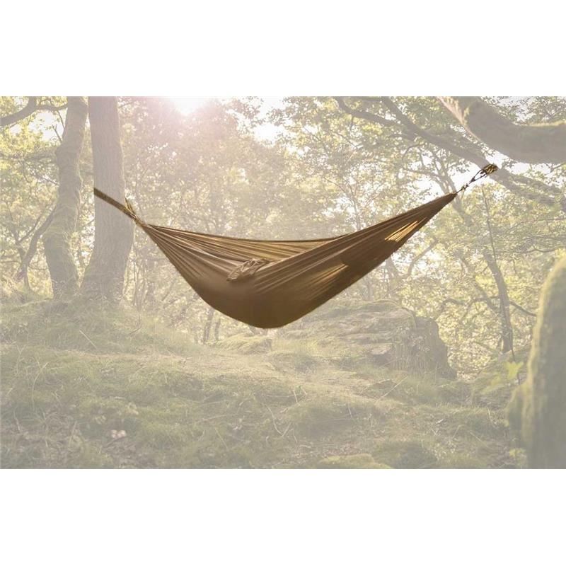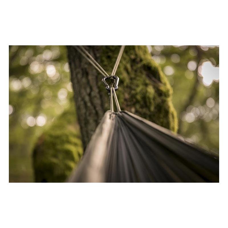 Specifications : • Manufactured in parachute nylon fabric reinforced with triple stitching • Usable bed dimensions: 275 x 135 cm • Folded dimensions: 24 x 18 cm • Supports up to 180 kg • 2 steel carabiners and suspension system included • The set is delivered in a zipped storage bag • Weight: 590 grams • Colour: Olive Green