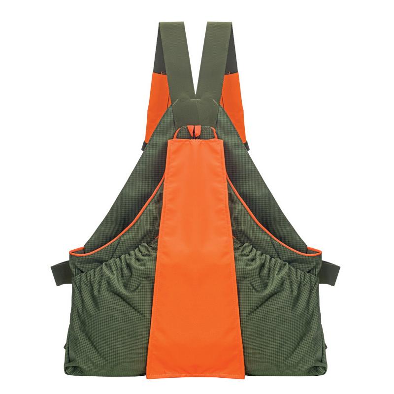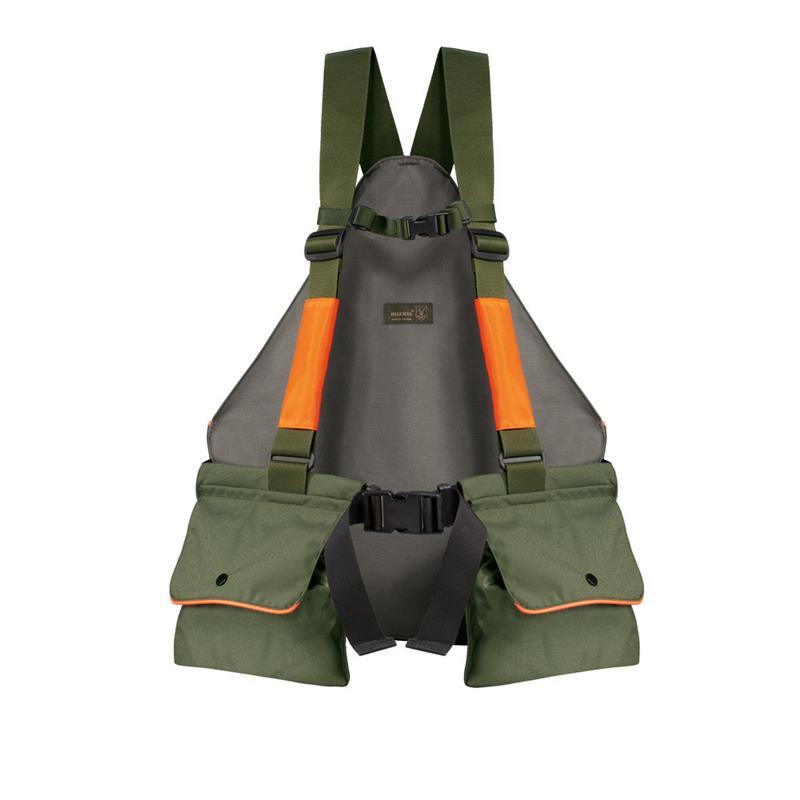 Technical Features: • Made in cordura • Removable high visibility back panel • Rear game pocket with holes in the bottom to prevent water retention • Back pocket to keep essentials within reach • Left front pocket with inner pocket for permit with zip closure • Front hooks for adjusting shoulder straps and size • Embroidery: RISERVA logo