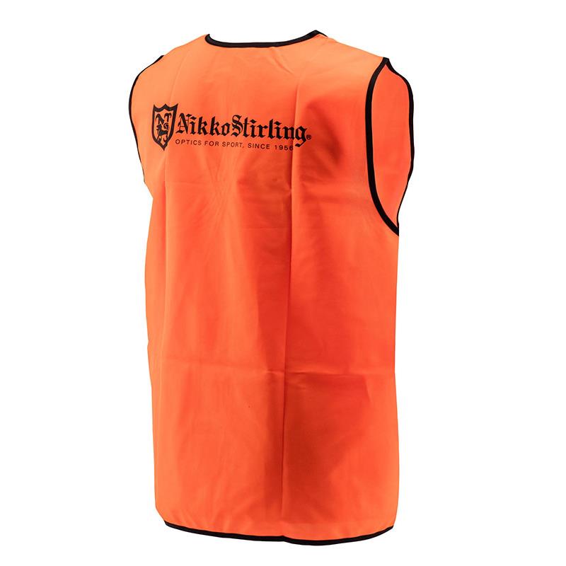 • Fluorescent orange hunting vest/tabard, screen printed on the chest and back