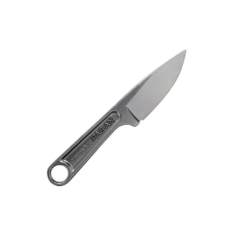 KA-BAR chose 425 steel for this knife. It's a slightly improved version of the famous 420 steel. Corrosion-resistant, sturdy and easy to sharpen. It has everything going for it. One would expect that the association with a wrench would make this knife incredibly heavy. Fortunately, this is not the case. Weighing only 90 grams, it's a very pleasant neck knife to wear. It is capable of opening boxes, making a sandwich, or preparing kindling for the fire.