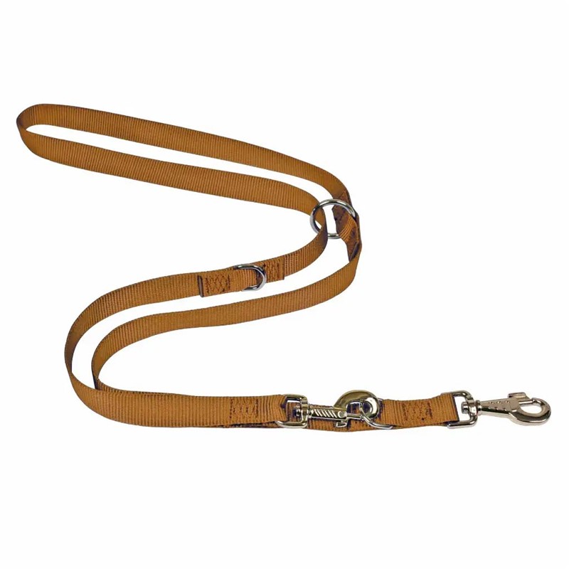 This multi-position leash in gold color combines the natural aesthetic of full-grain cowhide leather with the technical performance of non-slip nylon. Designed to offer maximum versatility in the field, it features a system of three adjustment rings allowing you to change the lead length in an instant according to the needs of the hunt or training. Its hybrid construction ensures a firm, secure grip, even in wet conditions, preventing the leash from slipping during a sudden dash by the animal. The leather, having undergone a slightly oiled tanning, provides immediate suppleness that preserves the handler's comfort during long days of pursuit.