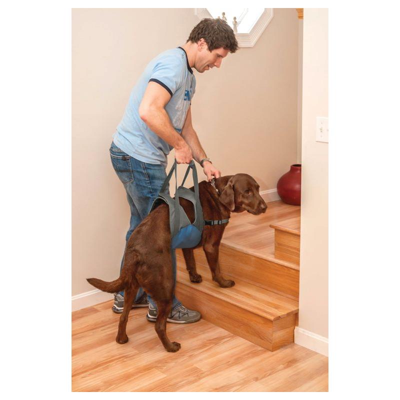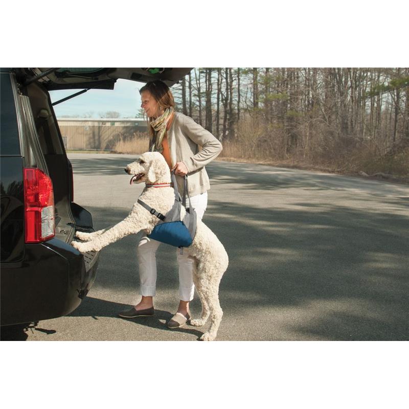 The UP & ABOUT™ lifting harness helps older or disabled dogs who have difficulty moving, get into a vehicle or climb stairs. The lifting harness is padded at the chest for added comfort, and two adjustable straps, one at the chest and the second at the belly, provide secure support to the dog and allow it to be lifted safely. The ergonomic design of the UP & ABOUT™ lifting harness reduces contact with painful points. The harness is suitable for dogs weighing 23 to 41 kg and with a chest circumference measuring up to 91 cm.