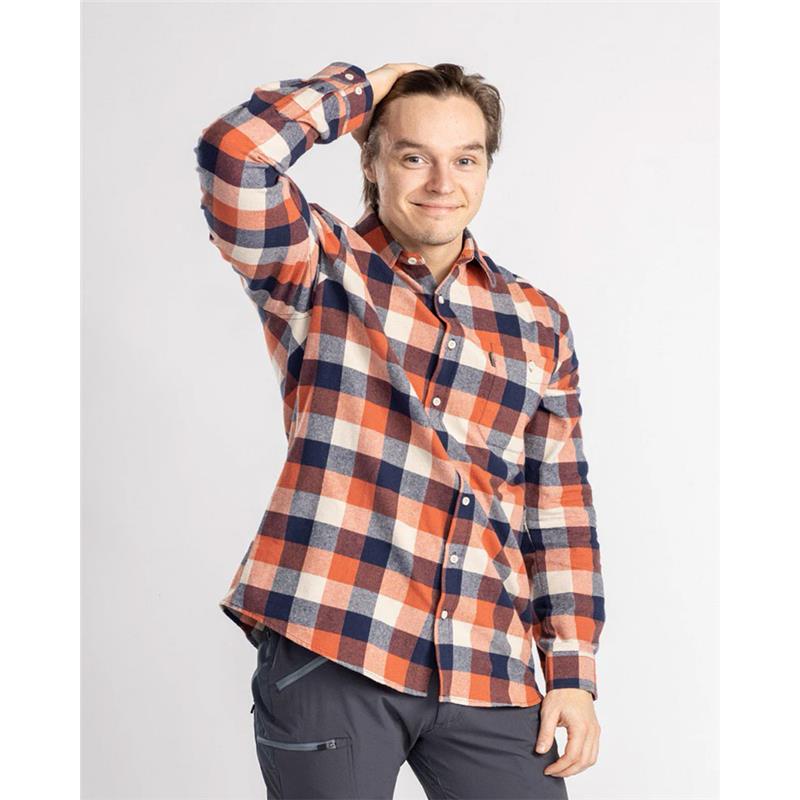 Comfortable and soft flannel shirt in limited edition, entirely made from recycled polyester and fabric scraps. The Pinewood flannel shirt is made from 100% recycled fabric scraps. By using fabric scraps from overproduction, we valorize resources instead of throwing or burning them. This allows us to combine exceptional quality with a product more respectful of the planet. The shirt is buttoned on the front, at the wrists and at the chest pocket, giving it a neat finish.