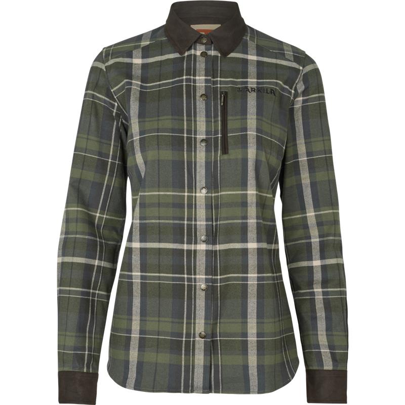 Our Pajala long-sleeved shirt for women combines comfort and functionality, making it ideal for hunting and leisure. The shirt is made from soft, breathable brushed flannel. It features a classic hunting check pattern that never goes out of style. The collar, elbows and cuffs are reinforced with suede imitation for better durability. The button placket features a snap button for a secure fit, while a zippered pocket on the chest provides handy storage for essentials. The Pajala shirt for women is designed with a feminine silhouette that ensures comfort without sacrificing style. It is perfect for dedicated huntresses who value both tradition, style, and modern functionality.