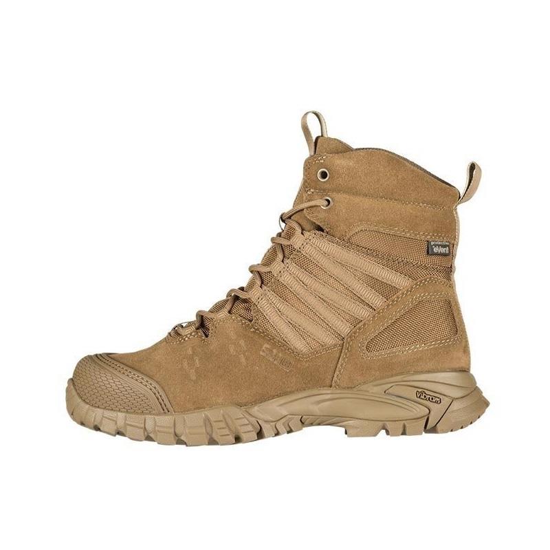 Characteristics : • Nylon and leather construction • Pro Fit fitting (normal) • Vibram outsole • Waterproof suede upper • Nylon shaft for high abrasion resistance • OrthoLite® insole • 5.11® rubber stone guard for added protection and durability • Waterproof lining (eVent)