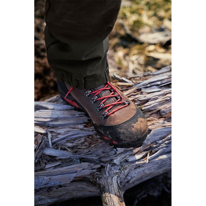 The Forest Hunter Mid GTX Shoes are made of leather, yet weigh only 740 grams each. A little wider than average, they feature a mid-height upper of 18 cm. They have been designed to be roomy at the front of the foot, which makes them very comfortable, but also perfect in cold weather because they offer enough room to wiggle your toes, even with thick insulating socks.