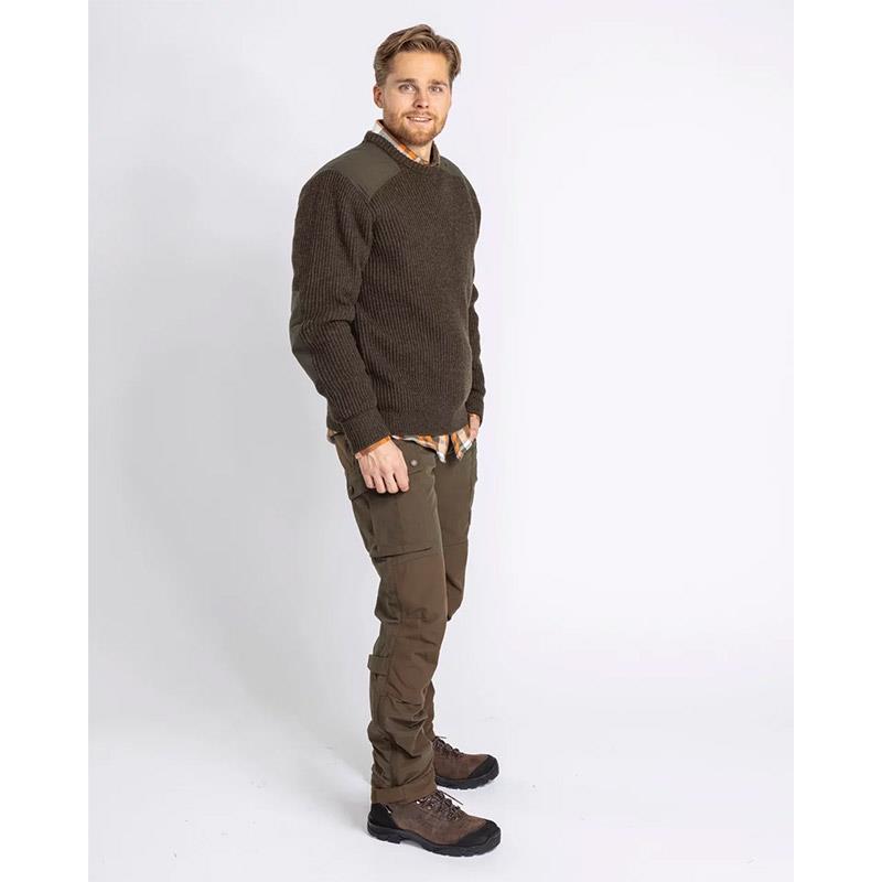 Lappland Rough is a knitted sweater in merino wool from our Lappland series which is synonymous with durability, resilience and endurance. The sweater has shoulders and elbows reinforced with rip-stop material, which prevents the fabric from tearing in case of scratches. Wool is a beneficial material that self-cleans and wicks away the moisture of the body, thus keeping you warm even if you are wet.