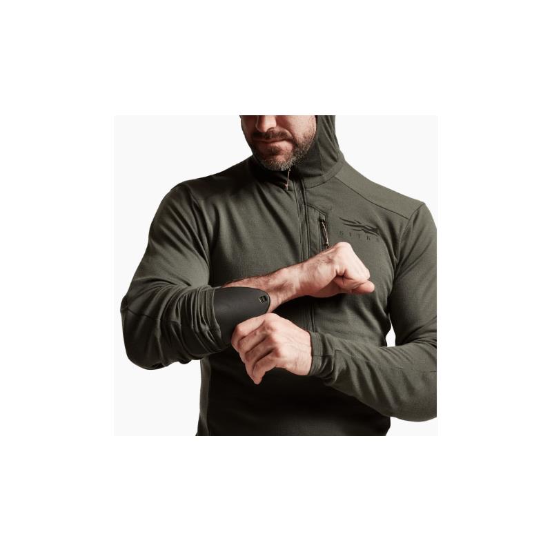 Getting closer to elks, mule deer and other big game requires stealth. We designed the Intercept Hoody to provide the best suppression of sound, smell, and sight to help you get within bow range. It's built with an ultra-silent merino wool blend that naturally resists odors to minimize smells and regulate temperature when you alternate between stop and go. And since your approach will probably involve crawling through brush, rocks, and thorns, we reinforced our ArmorSpun merino wool with nylon and added removable elbow pads to ensure it has the robust durability needed for bow hunting.