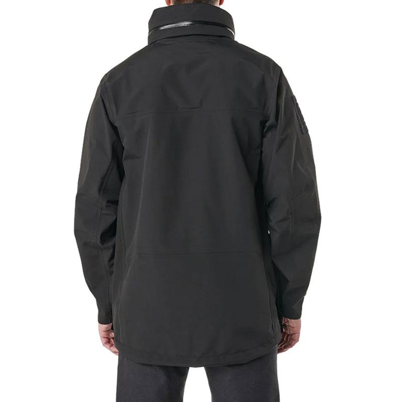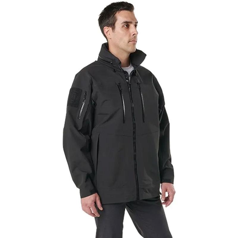 Features: • Waterproof and windproof outer layer • Waterproof (10,000 mm) and breathable (8,000 g/m² 24 h) membrane • Adjustable hood that folds into the collar • 2 chest pockets with a discreet cable pass-through on the left one • 2 arm pockets and 2 hand pockets • Unzipped mesh pocket inside • Quixip™ side system for easy access to belt equipment • YKK® central bi-directional waterproof zipper with a microfiber chin guard • YKK® waterproof zippers • Zipped vents under the armpits • Velcro® adjustable cuffs • Bottom of jacket and collar adjusted by adjustable elastic cords • Identification patch location on the right arm • Durable 3L Nylon fabric with sealed seams