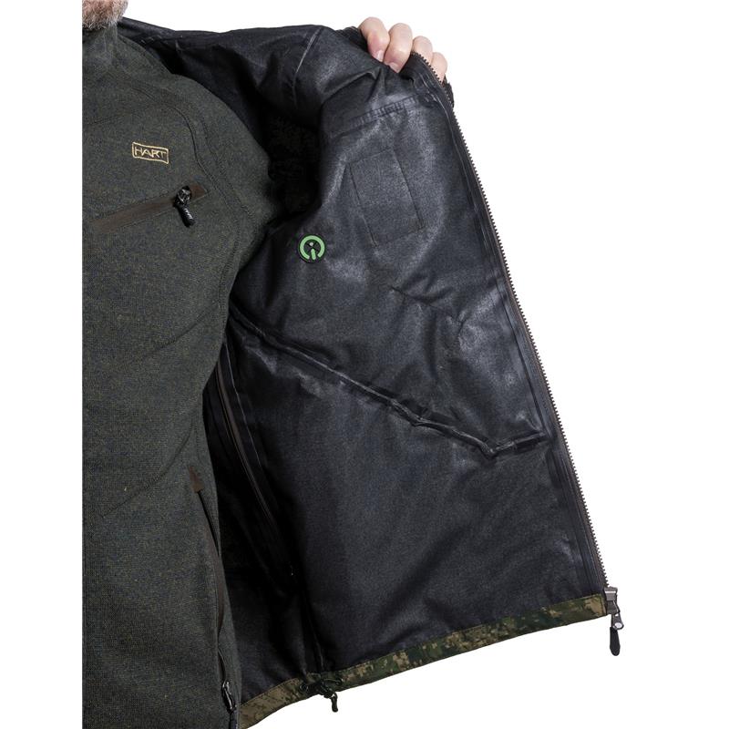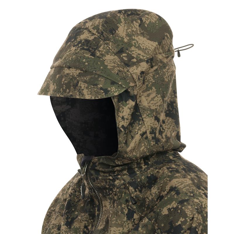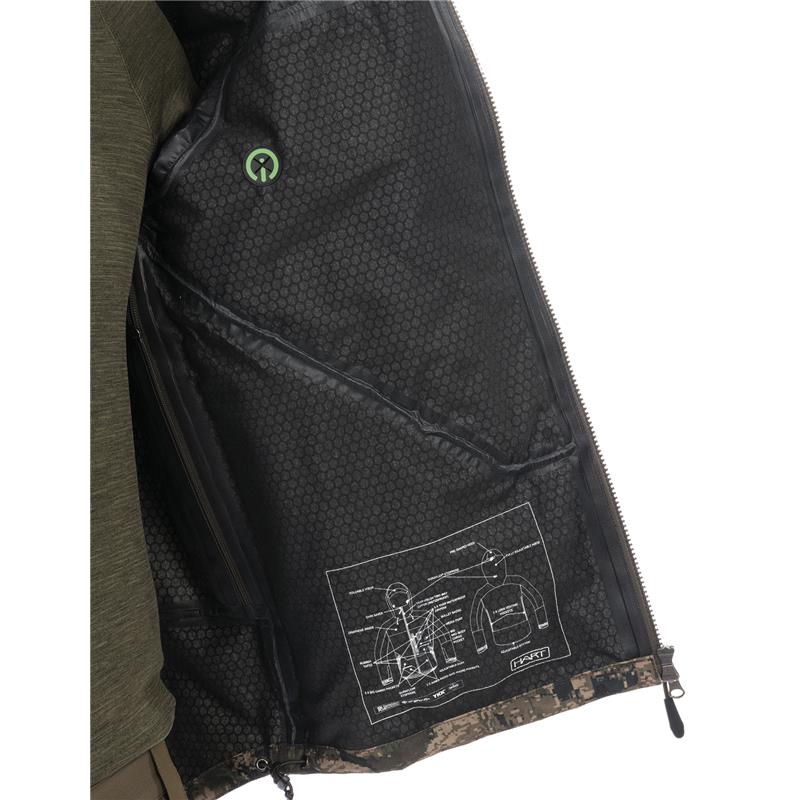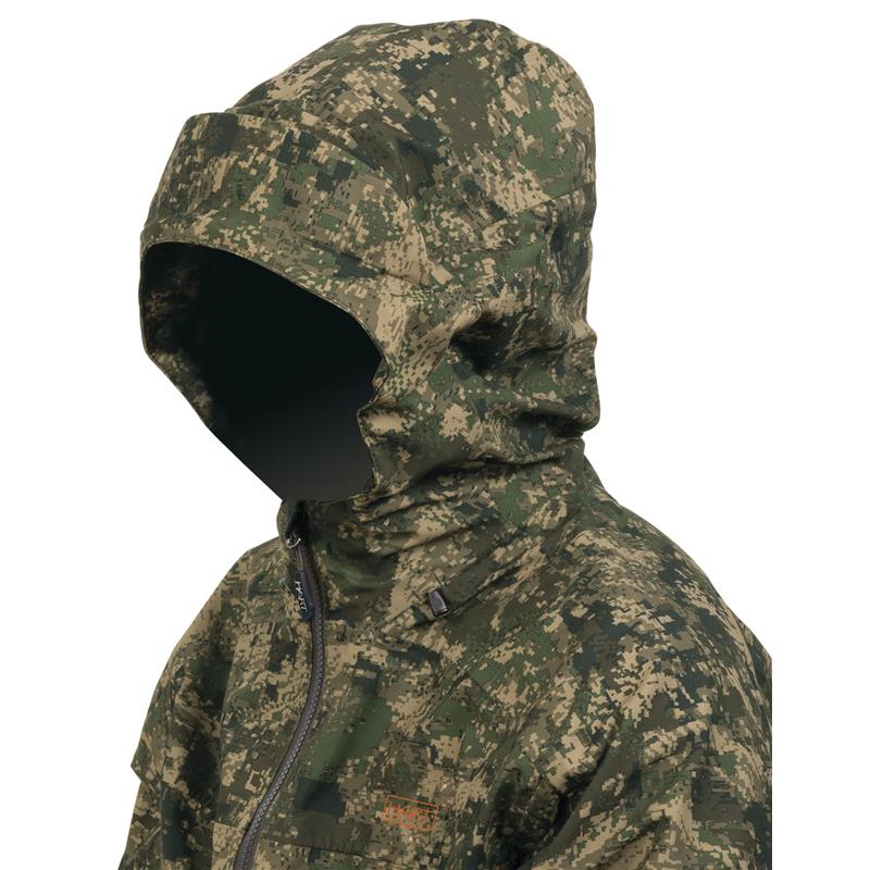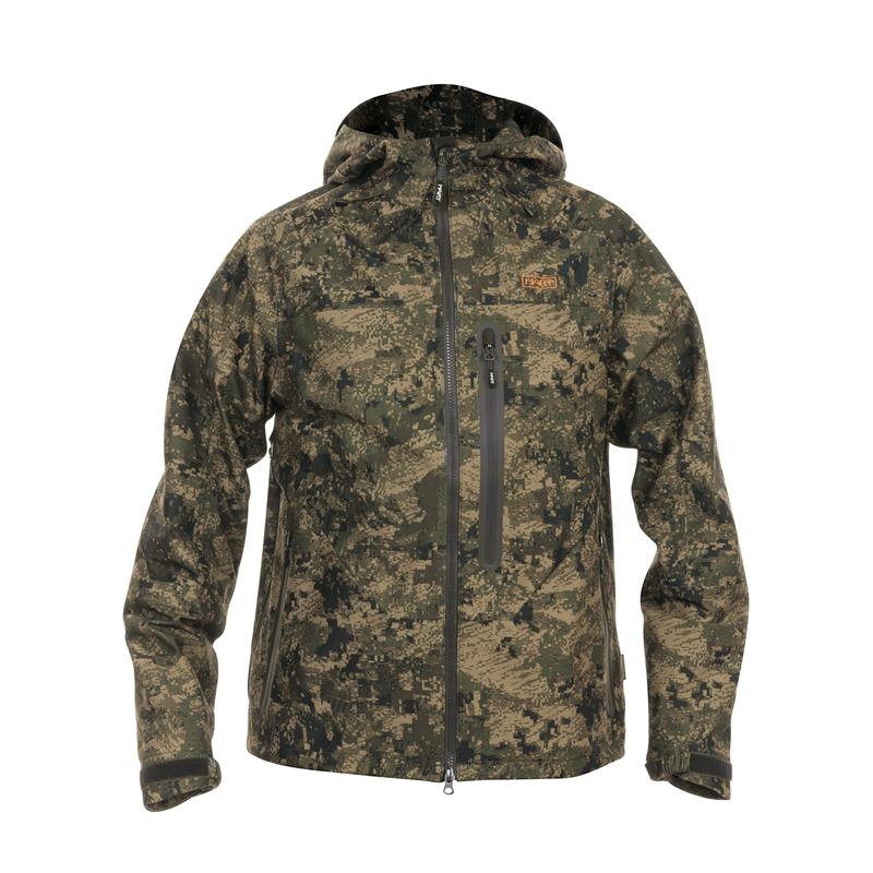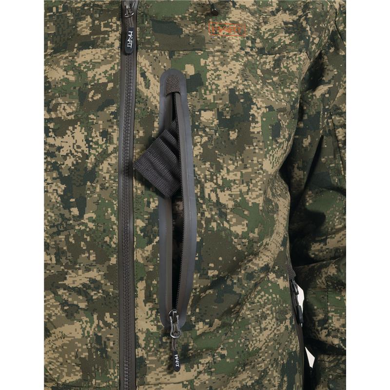 Uncompromising tri-laminate fabric composition creates the most waterproof and windproof construction, but also the most breathable. The inner layer of graphene regulates body temperature and acts as a filter between the skin and the environment, evacuating heat in warm weather and preserving and evenly distributing body heat in colder climates.The strategically placed mid-body cargo pocket offers large storage capacity and conceals specific pockets for different tools such as a radio/GPS, a mobile phone and a detachable cartridge holder for bullets. The media port allows the headphone wire to be routed inside the jacket. All your accessories will be within reach, but protected against unwanted snags in the bushes.