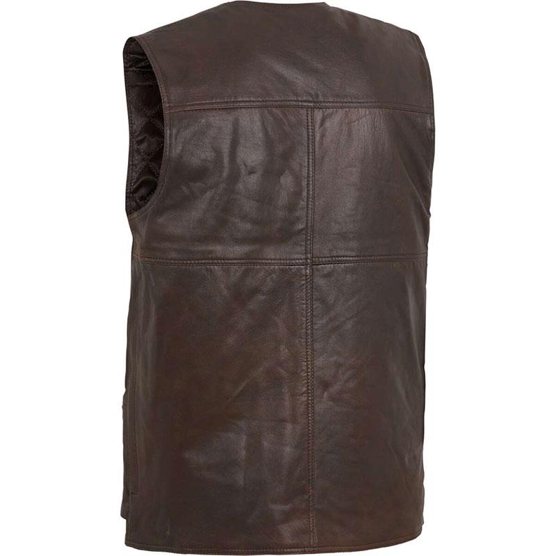 The hunting vest has zippered storage pockets as well as a large back pocket with openings on both sides.