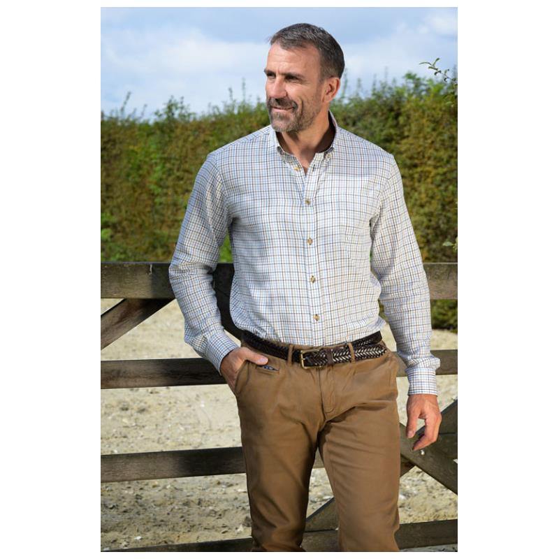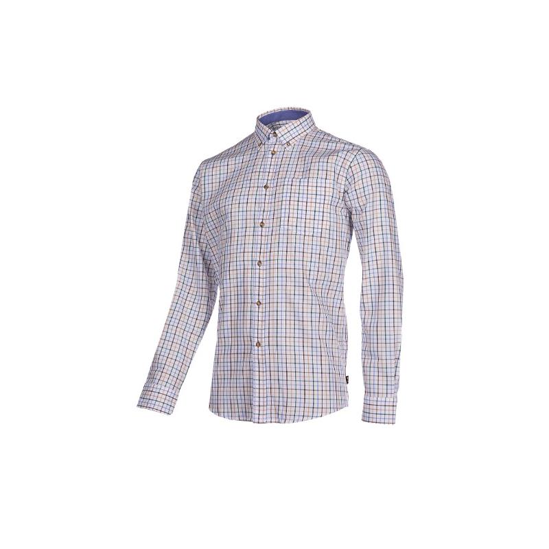 Plaid long-sleeved shirt in 100% brushed cotton, with chest pocket and buttoned collar; stays tucked in thanks to its extra length.
