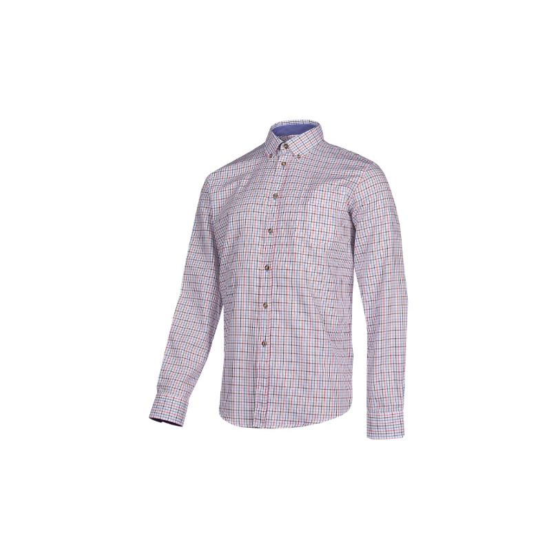 Long-sleeved plaid shirt in 100% brushed cotton, with chest pocket and buttoned collar; stays tucked in well thanks to its extra length.