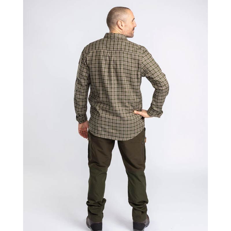 Incredibly soft and comfortable blended wool shirt with a brushed surface for added softness. The wool is self-cleaning and wicks moisture away from the body while keeping you warm even when wet. This long-sleeved men's shirt is the perfect blend of comfort and functionality. Made from a comfortable wool blend with a brushed surface, it is exceptionally soft to the touch. The wool, known for its outstanding properties, wicks away moisture and is self-cleaning. It effectively wicks away moisture and sweat from your body, allowing you to stay warm even if you are wet. The shirt buttons up at the front and has two chest pockets with buttons. Whether you are going hunting or engaging in various outdoor activities, this shirt is an excellent choice as it keeps you warm and comfortable while you enjoy your adventures.