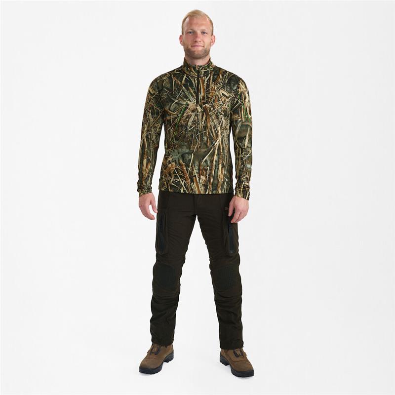 The fusion of functionality and camouflage for experienced hunters. Featuring a half-zip at the neck, this hunting t-shirt is perfect as a versatile base layer. Designed in Realtree MAX-7™ camouflage, it allows you to blend into various environments. This piece gives you what you need to stay comfortable during hunting: good comfort, great freedom of movement and a t-shirt that has received SILVADUR™ antimicrobial treatment, effectively contributing to you not giving off odors.