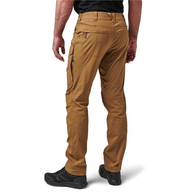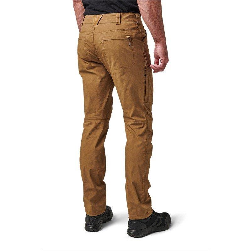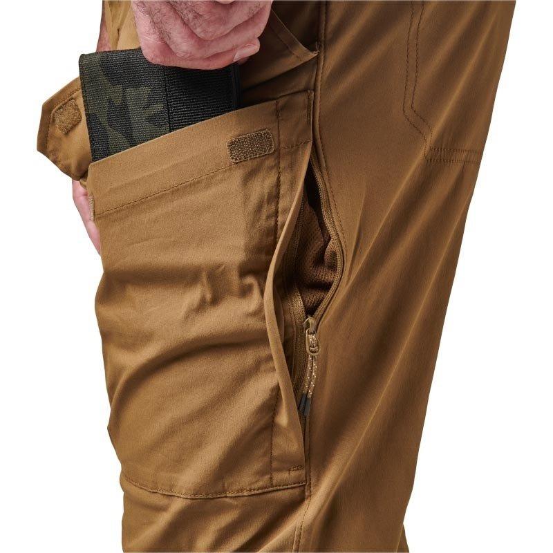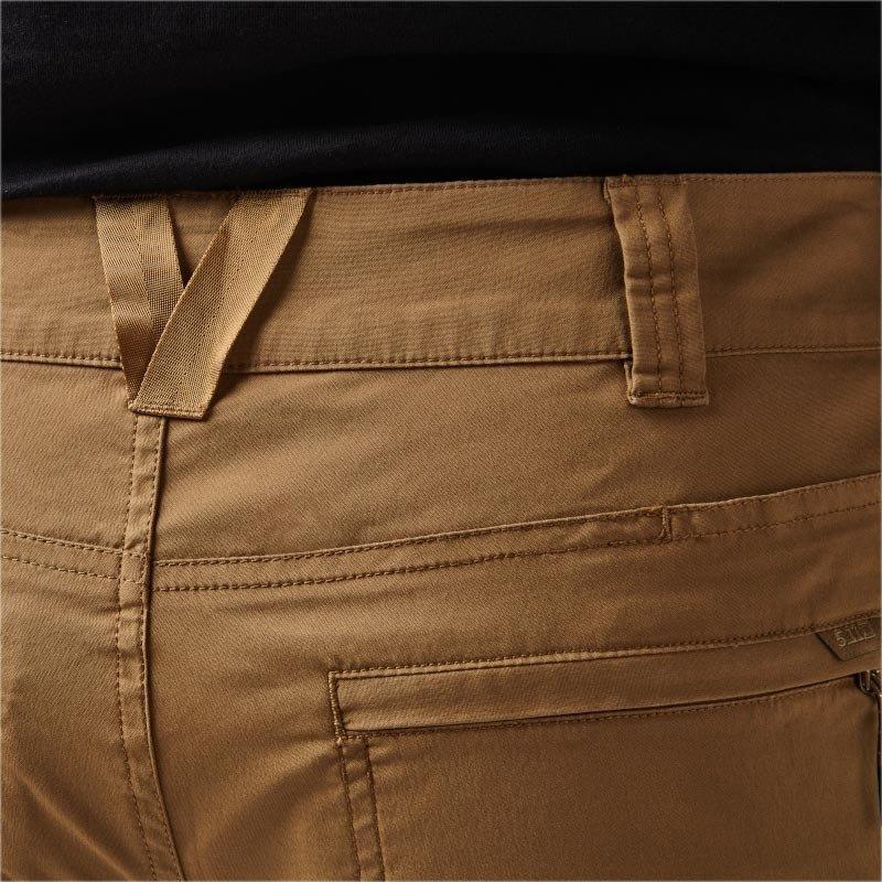 Features: • Straight cut • Contoured waistband with zipper and snap button closure with logo • 6 pockets • Front hand pockets with reinforcement for clip-on accessories • Zipped welt pockets at the back • Utility pockets at the back of the yoke • Strap for the belt loop in the centre of the back • Cargo pockets with self-grip fastening • Side vents with zip integrated into the back edge of the cargo pockets • Knee articulation • Embroidery [+]® on the left side seam • Woven label 5.11 [+]® on the right back pocket • Body: 72% cotton/ 25% nylon/ 3% elastane poplin, 5.0-oz. • Pockets and vents: 100% polyester tricot mesh, 3.0-oz.
