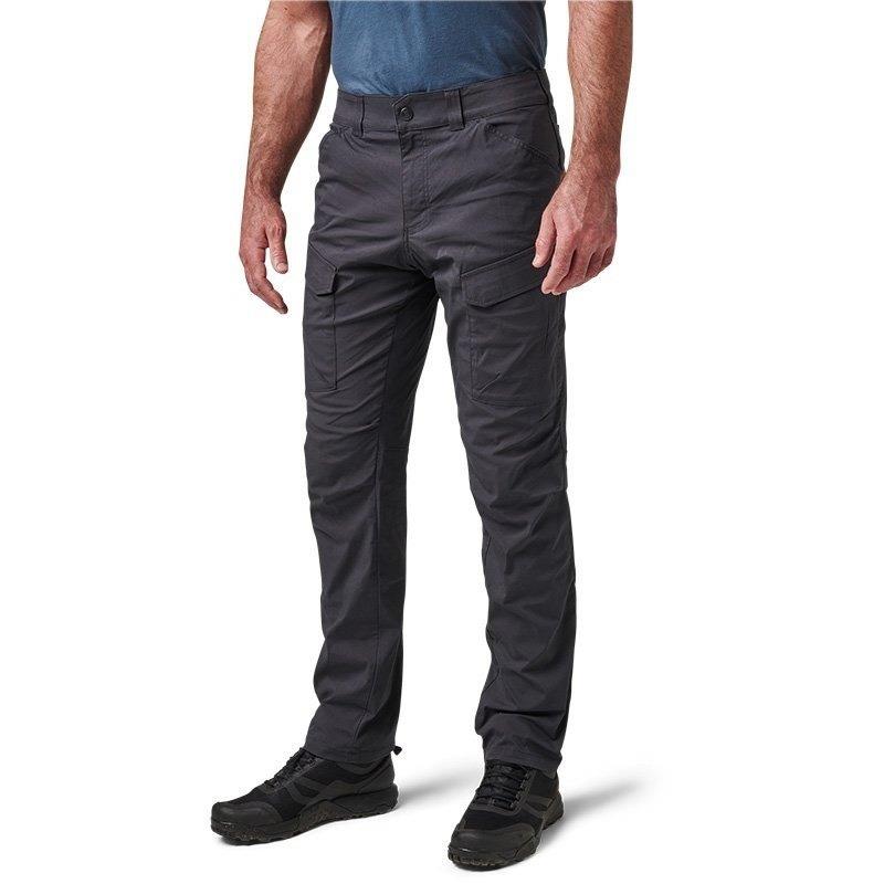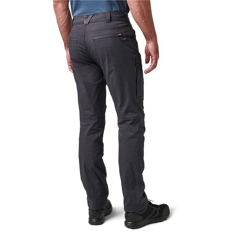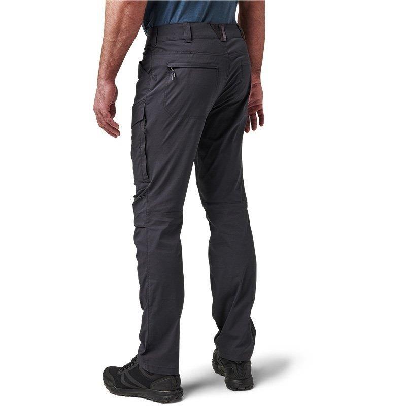 Features: • Straight cut • Contoured waistband with zip and snap button closure with logo • 6 pockets • Front hand pockets with reinforcement for clip accessories • Back zippered welt pockets • Utility pockets on the back of the yoke • Strap for the belt loop in the center of the back • Cargo pockets with self-adhesive closure • Side vents with zip integrated on the rear edge of the cargo pockets • Knee articulation • Embroidery [+]® on the left side seam • Woven label 5.11 [+]® on the right back pocket • Body: 72% cotton/ 25% nylon/ 3% spandex poplin, 5.0-oz. • Pockets and vents: 100% polyester tricot mesh, 3.0-oz.