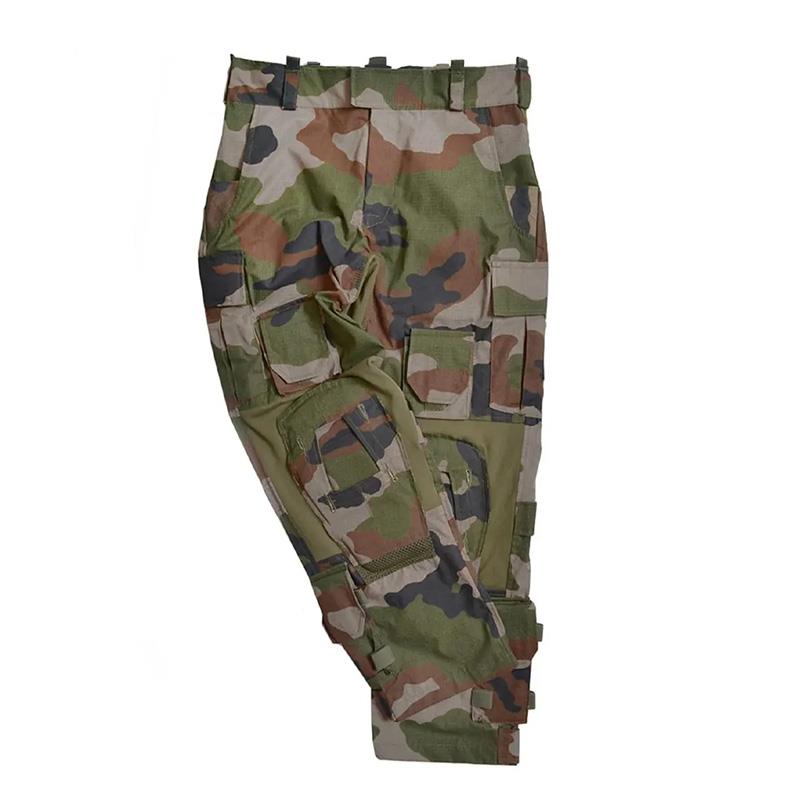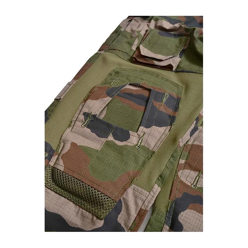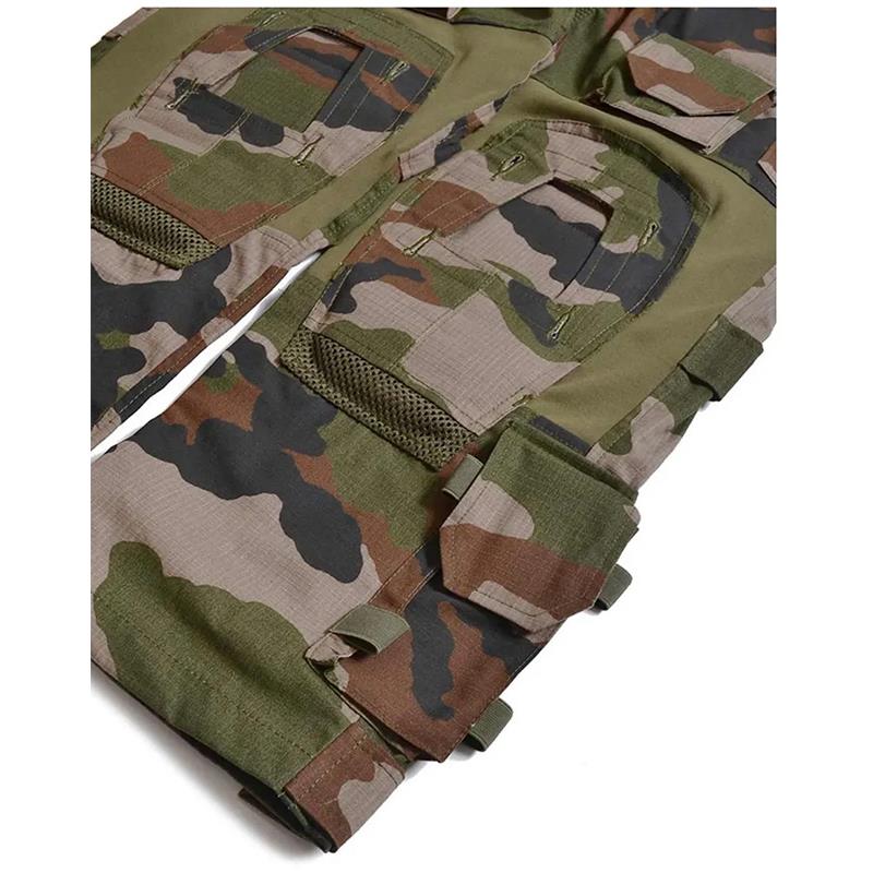 Features: • Knee reinforcements with removable discreet knee pads • Knee pad support compatible with Crye or D30 type knee pads • 4-way stretch fabric on the waist, crotch and knees • 2 deep front pockets reinforced for clip accessories • 2 front thigh pouches designed to be accessible in sitting position • 2 cargo pockets with paracord loop and elastic bands that can hold up to 4 AR type magazines • 2 non-closing dump type rear pockets • 2 ankle side pockets for AR magazine with elastic loops for glow sticks • Pocket closure by self-grip strips • 5 cm wide belt loops • Self-grip adjustment of knees and ankles • Waist closure by self-grip strip (no button) • Zipper fly opening downward • Mesh fabric for knee drainage and water evacuation • NATO standard IRR infrared treatment • Water-repellent Poly/Cotton 50/50 Rip stop fabric • Reinforced seams at all tension points • Does not have any buttons • Weight: 800 g