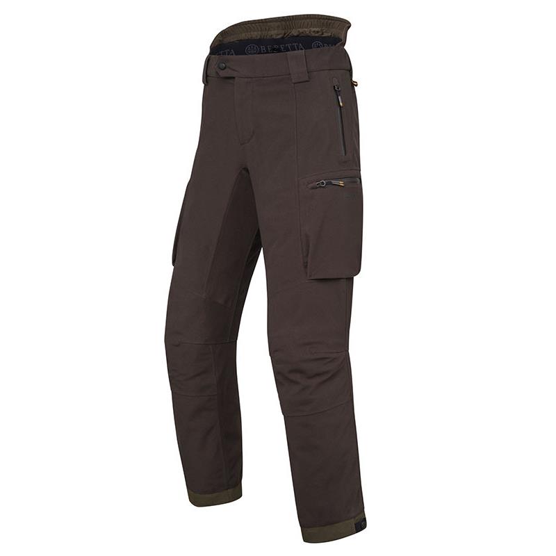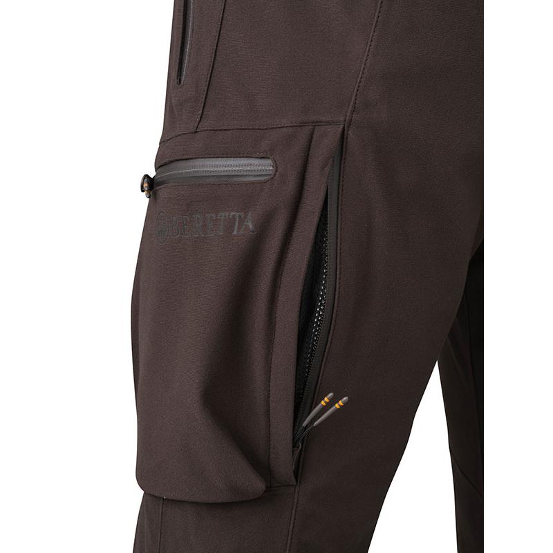 Features: • Elastic waist • YKK zipper and snap button • Belt loops • Ambidextrous knife-holder loop • Inner buttons for suspenders • Side pockets with YKK zipper • Side cargo pockets with YKK zipper • Ventilation openings on the outside of the leg with YKK zipper • High lumbar support • Rear pocket with YKK zipper • Adjustment at the bottom with snap buttons at the bottom • Hook at the bottom for boot attachment • Rubberized Beretta logo on the back • Cut: Regular