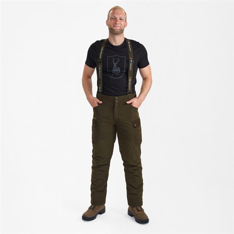 The wind-resistant and waterproof winter trousers offer a combination of insulating warmth and comfort with exceptional breathability, thanks to the Deer-Tex® Performance Shell membrane which ensures a comfortable internal temperature for the hunter. A modern version of the classic hunting trousers with faux suede details, these trousers have practical features to perform outdoors and protect you from harsh winter conditions.
