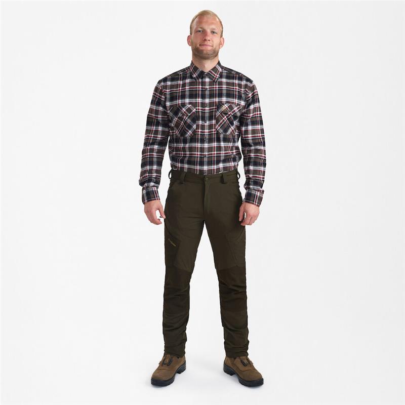 This trousers is the new generation of the popular Northward trousers from Deerhunter. Crafted with a cotton fibre interior, this trousers prioritizes comfort for longer wear. Its exceptional stretch makes it ideal for various tasks, including preparing and maintaining hunting areas. Featuring numerous practical features, this trousers has two thigh pockets with safe hidden zippers, offering storage. The pocket on the right thigh includes a dedicated knife pocket, while an additional pocket on the left thigh optimizes utility. Designed with pre-formed knees and reinforced fabric, this trousers provides durability and protection, ensuring high resistance in demanding environments. Whether you are engaged in outdoor activities, daily tasks or a hunting game, the Northward trousers is designed to meet the versatile needs of hunters. Optimize your performance and comfort with this reliable and functional trousers.