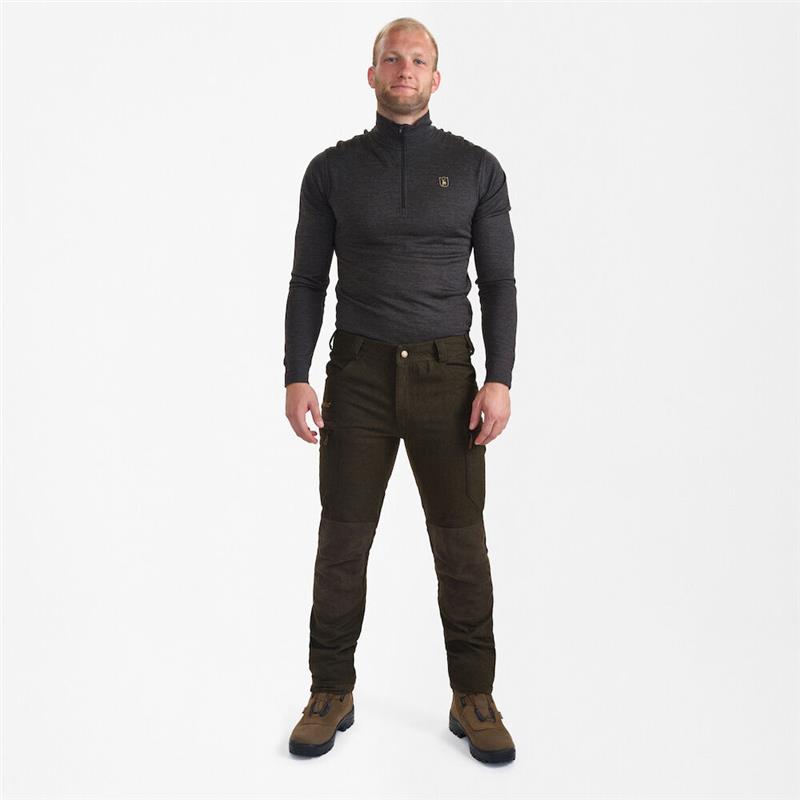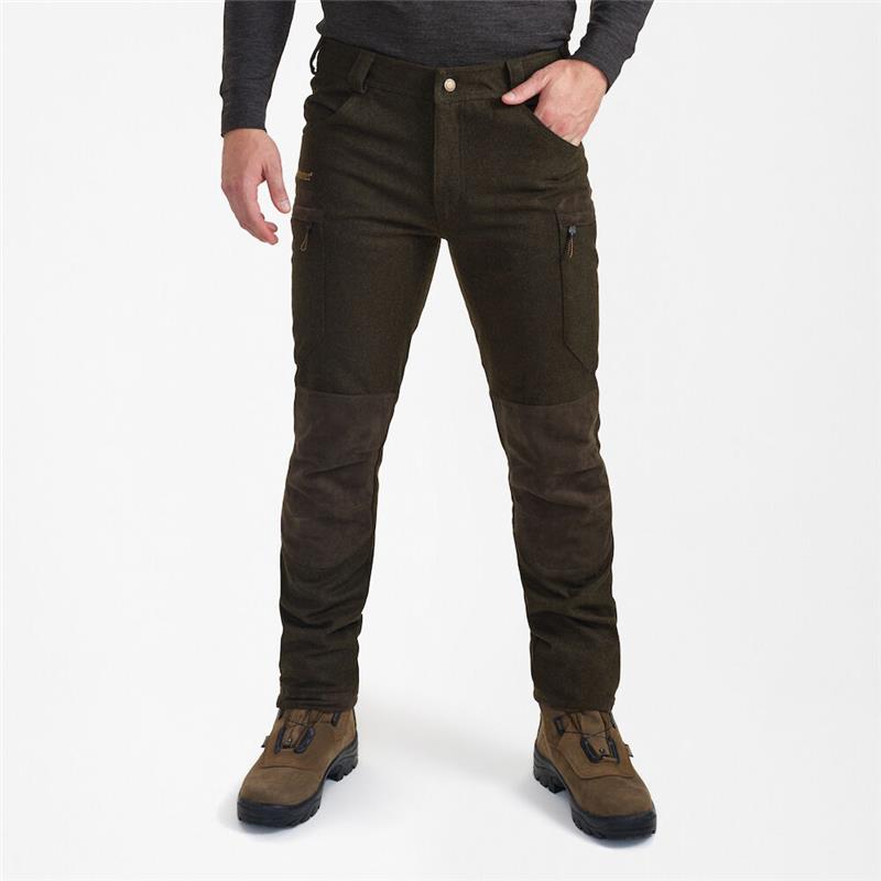 Features: • Soft and quiet quality of blended wool • Wool regulates body temperature • Faux suede details • Two front pockets • Two spacious thigh pockets with hidden zip closure • Knife pocket inside the left thigh pocket • Rear pocket with hidden zip closure • Preformed knees • adjustable at ankles with velcro strap • Breathable mesh lining
