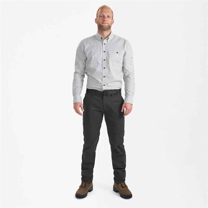 Whether you're preparing for a hunting trip, embarking on an outdoor adventure, or planning a city getaway, the Slogen zip-off trousers are a versatile outdoor garment. These trousers easily convert into shorts, with a longer layer of fabric behind the zipper to better protect the skin and provide greater comfort. They feature numerous characteristics, including a BIONIC FINISH®ECO water-repellent treatment and handy pockets. They also come with other notable features such as an additional zip pocket on the right front pocket for secure storage of essentials, as well as a belt with a Deerhunter logo on the buckle. The Slogen zip-off trousers are the ideal 2-in-1 solution for all occasions. They are available in green and black. Effortlessly pair them with the Moor zip-off jacket for an outfit that adapts to temperature changes and keeps you ready for any adventure.