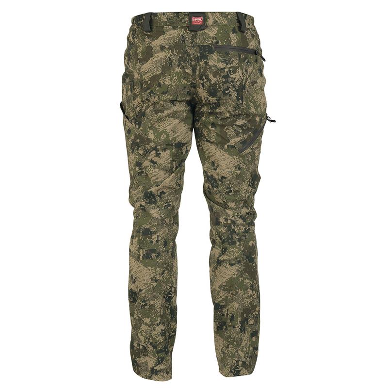 Made from silent, two-way stretch fabric with a layer of graphene inside. The graphene regulates your body temperature and acts like a filter between your skin and the environment, wicking away heat in warm weather and preserving and distributing body heat evenly in cold weather. The fit allows you to wear a base layer underneath during cooler mornings and evenings. Designed with articulated knees that facilitate freedom of movement over difficult terrain. Ripstop fabric with two-way stretch. 6 pockets : 2 zipped front pockets, 2 slanted cargo pockets (1 zipped), 1 zipped back pocket and 1 side pocket for the knife. Our PIXEL FOREST camouflage allows the hunter to blend into the surroundings by ensuring a uniform continuity with the surrounding nature.