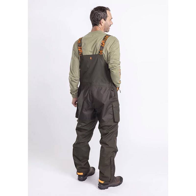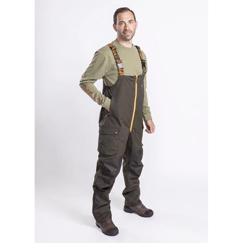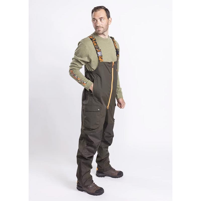 The Pinewood Bolmen Fishing trousers have a high waist, non-removable adjustable straps and an elastic waistband. Double zip fasteners, hand warmer pockets, leg pocket, adjustable bottom with zipper and hook and loop fastener. Pinewood logo pattern printed on the lower left leg.